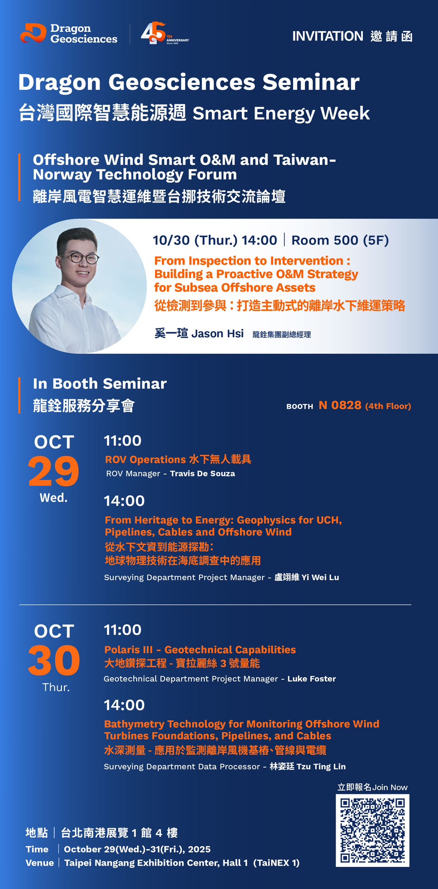 隨著台灣離岸風電進入運維新階段,龍銓的服務也持續進化,從前期場址勘查、法規申請,到運維監測與 EPC 任務,打造全方位的水下解決方案。我們的專業團隊與技術,包含水下無人載具(ROV)、水下測繪及檢測等,協助客戶降低風險、提升效率,並與 O&M 合作夥伴建立緊密連結。